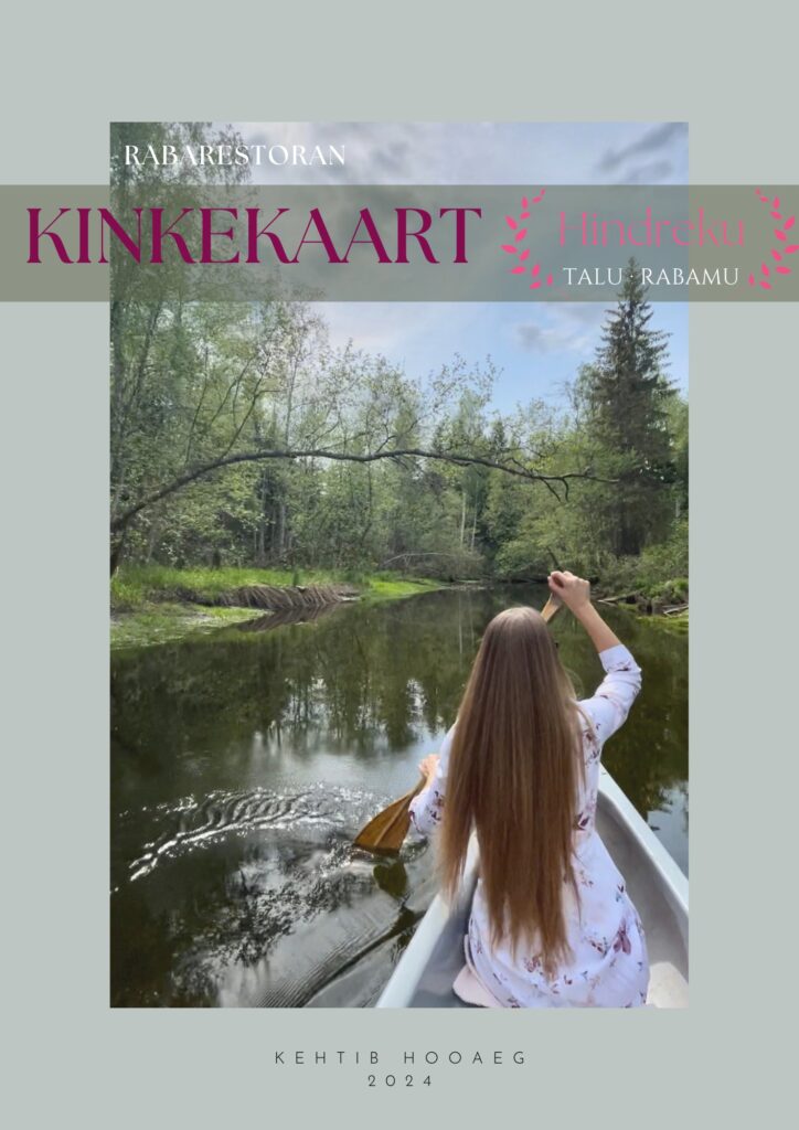Elamuste armastajatele soovitab Hindreku talu Rabaresto kinkekaarti! Kinkekaart kehtib kahele. Rabarestorani pääseb mööda müstilist Esna jõge, kus Mündi raba veerel ootab teid kolmekäiguline eine. Kinkekaardi toimetame sinuni kahe tööpäeva jooksul või virtuaalselt. Lisainfo: info@hindrekutalu.ee või vaata siit!