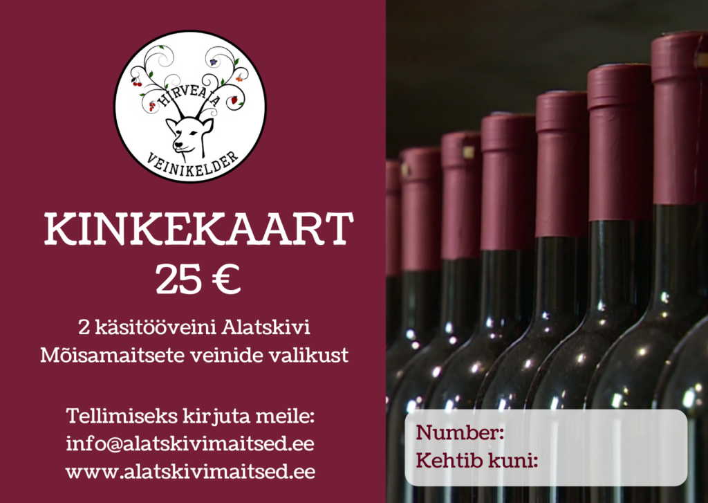 Kinkekaart sisaldab Allikukivi veinimõisa tuuri 4-le inimesele. Vaata lähemalt siit!