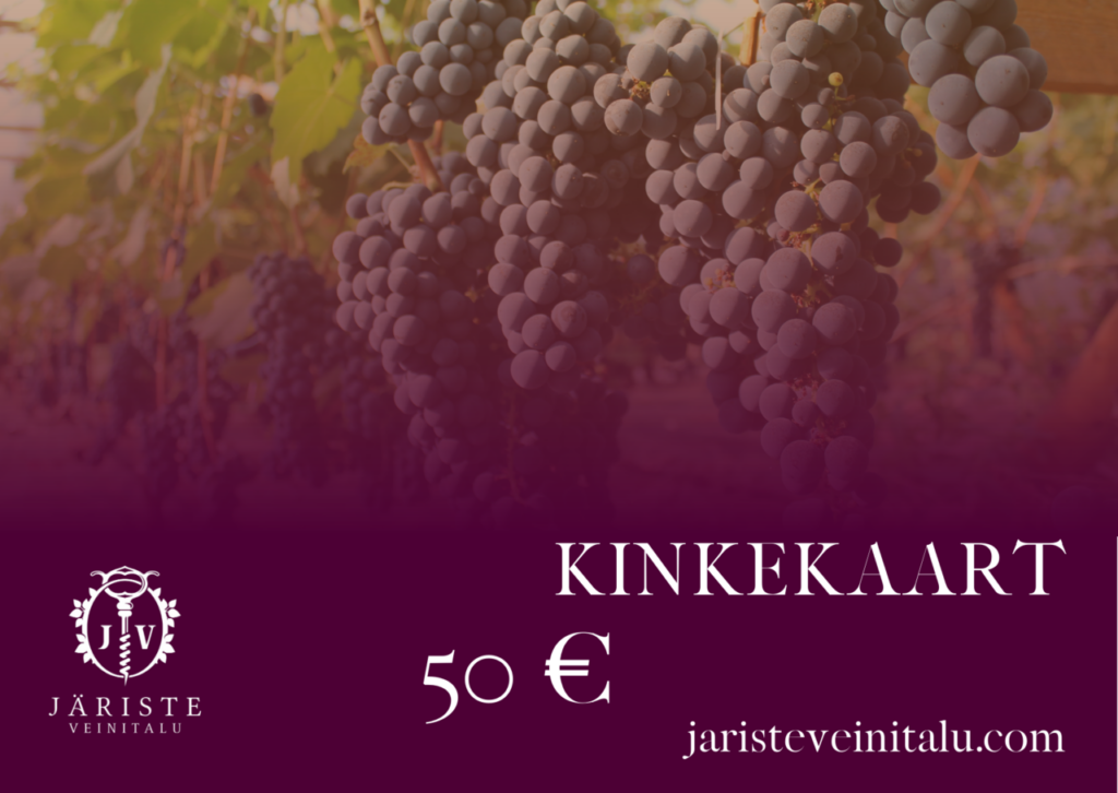 Kui soovid meid külastada, siis saad kinkekaardi väärtuses broneerida ekskursiooni istandustes+ degustatsiooni. Kinkekaarti saab kasutada ka Järiste Veinitalu ja Järiste Pitsa pakettide eest tasumisel. Külalisi võtame vastu 1. maist kuni 30. septembrini.
